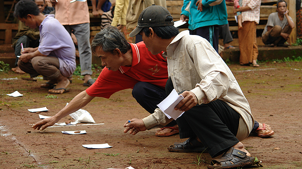 Community members in a village in Champasak province, Laos identify areas where open defecation is taking place ahead of implementing sanitation measures (Photo: Viengsompasong Inthavong/World Bank, CC BY-NC-ND 2.0)
