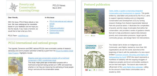My initial project with IIED involved proposing a redesign of the Poverty and Conservation Learning Group (PCLG) newsletter, a monthly bulletin with news and opportunities for people working on biodiversity conservation and poverty alleviation.