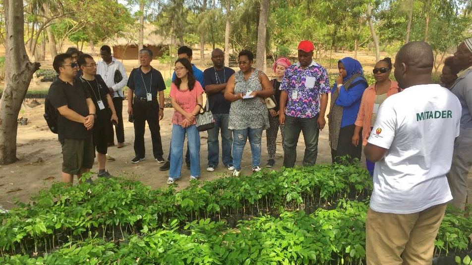 Chinese and African delegates visit a nursery and learn about a reforestation project in Pemba, Mozambique (Photo: Duncan Macqueen/IIED)